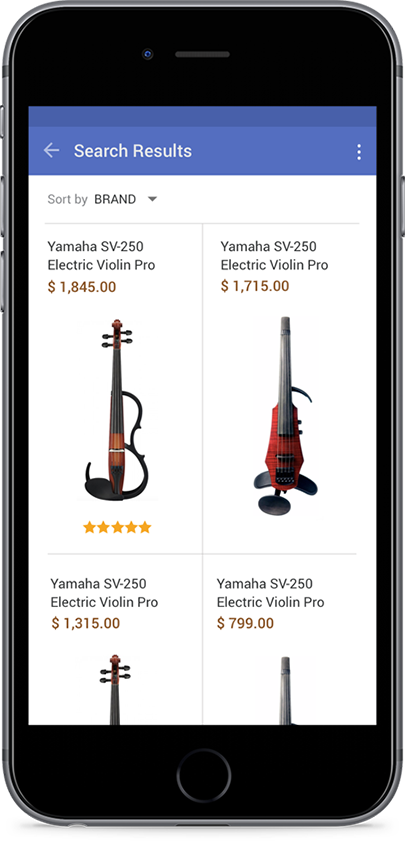 This is an in class design challenge focusing on search results and filter interface. I created this for an imaginary violin on-line shop. I added an e-commerce product result listing page.